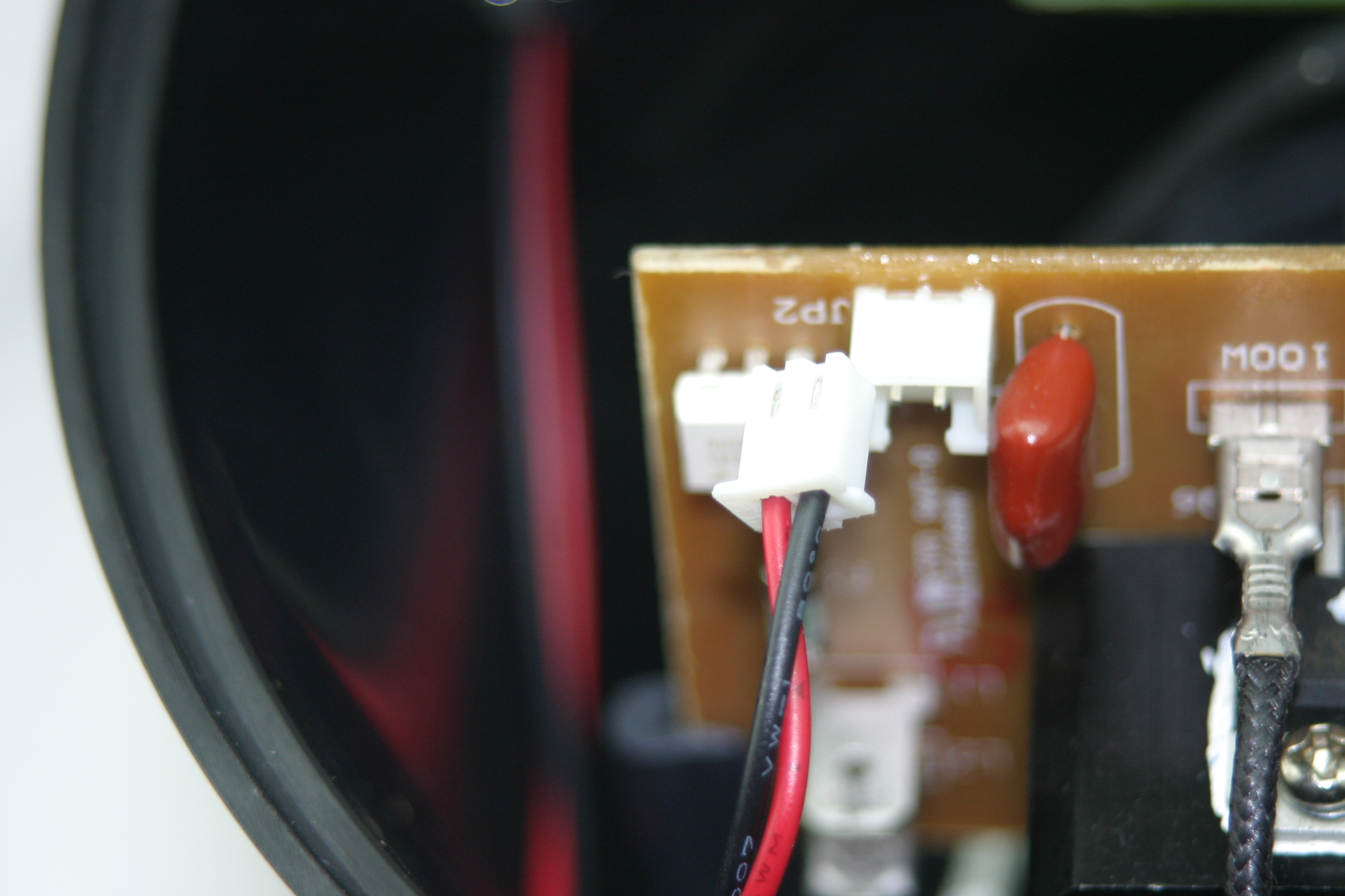 Both of these cables are low voltage and will come off easily when pulled. JP1 connects to the main logic board with the Atmel CPU and front control panel. JP2 connects to the Fan Speed Control potentiometer.